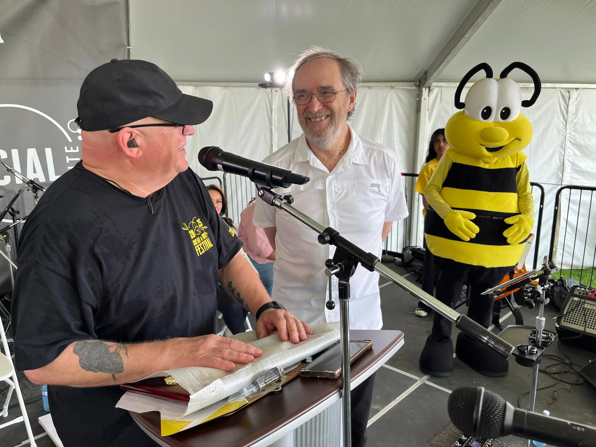 Long-time stage chairman Kevin Little at last summer’s Bread and Honey Festival renaming announcement.